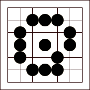 atari. White can again capture, but . . . Diagram 17: Now White is left with only one eye. Diagram 18: Black now captures the entire White group by filling this last remaining liberty. |