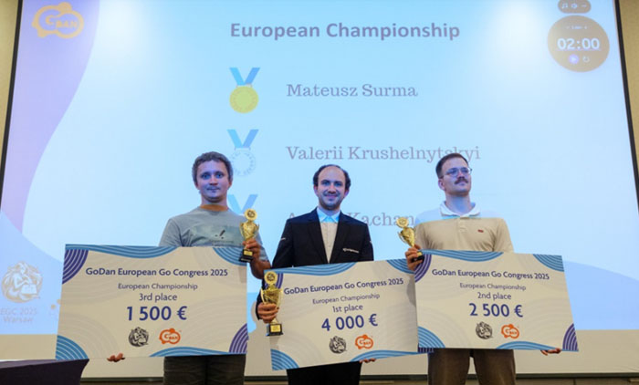欧州選手権においては、ポーランドのスルマ3pが決勝でウクライナのヴァレリー・クルシェルニツキー7dを粘り強い碁で中押し勝ちし優勝した。欧州の主要大会で上位の常連である実力者のスルマ3pだが、欧州選手権における優勝はこれが初めて。祖国でのコングレスで個人・団体で優勝する快挙となった。3位はアルテム・カチャノフスキー3p(ウクライナ)、4位はスタニスワフ・フレイラック1p(ポーランド)だった。