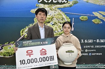 スミレ四段が「2026楊口郡国土正中央杯ミレニアム天元戦」で優勝し、韓国で2度目の優勝カップを手に入れた。