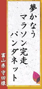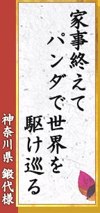 - ※投稿された作品の著作はパンダネット事務局に帰属し、パンダネットメールマガジン、ホームページ等で使用させていただきます。盗作及び過去に投稿した作品はご遠慮ください。