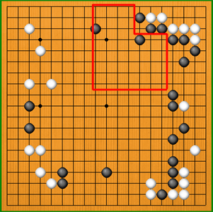 しかし、20目と数えていた左上が40目になりました。黒はさらに20目を増やさなくてはいけません。
