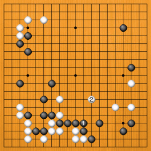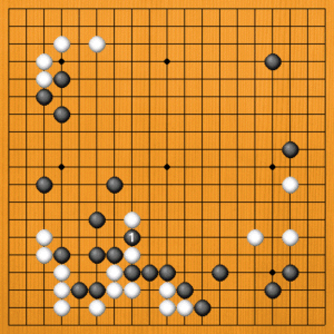 | 下辺一帯の折衝で、黒がうまく立ち回りました。流れは黒に傾いてきましたが、この後の中盤の攻防もお楽しみに。 |