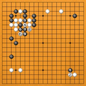 黒1のシチョウアタリで白2を催促して、黒3の好点に回る作戦でした。白2はダメみたいな手ですが、黒3は立派な一手です。白2を打たせただけで、黒は満足です。