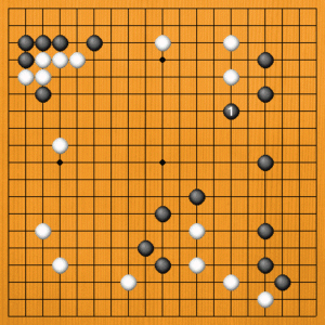 | 白が優勢ですが、このあと黒がいい手を発見して奮戦します。次回もお楽しみに。 |
