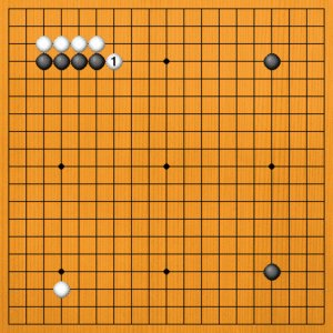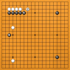 白1と慌てて左辺を囲い始めましたが、もちろん白aとノビるのが正しい手です。アマチュアの方の碁を見ていると、白1のような見える地を急いで取りに行く傾向があります。
