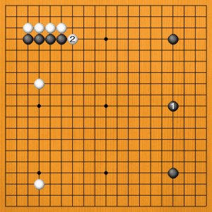 黒1(D)の三連星は最大級の大場ですが、やはり白2の絶好点を占められてはいけません。ここが双方に取って、逃せぬポイントでした。