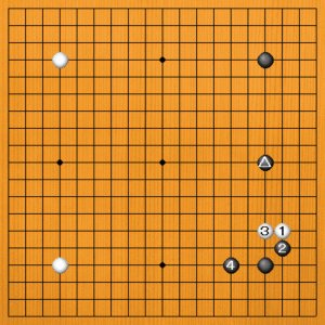 黒2とコスミツけられて、白3と立った石が攻められるのは避けられません。黒に主導権を握られて、序盤早々苦戦が予想されます。