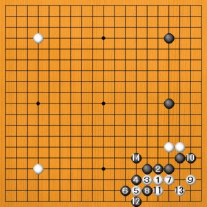 白13まで生きましたが、黒14と構えた黒の厚みは大変なものです。これだけ厚ければ、大きな地に匹敵するだけの価値があります。