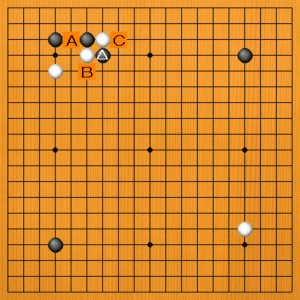 黒が△と切ったところです。次の一手を、A~Cの選択肢の中から示してください。