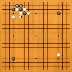 しかし、白1と黒4の交換がやや悪手になっています。もっといい手がありました。