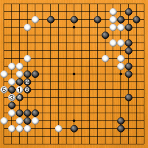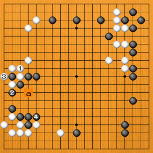 白1とツゲば、白2のアテを利かします。ここで黒aとツグのでは動きが重いのです。黒4と力強く押して