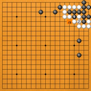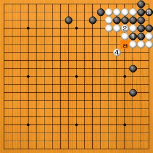 黒1(A)のアテは、aの断点を作ってから黒3と戻る意味で、一仕事していると言えなくもないのですが、これでは不十分なのです。
