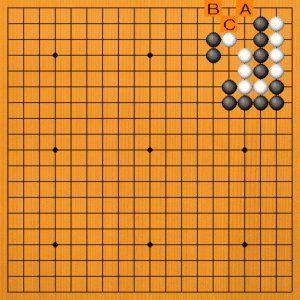 次の黒の手を考えてみましょう。候補は三つあります。