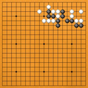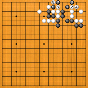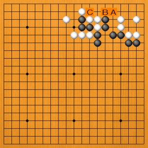 黒は取られた三目を利用して右上隅の白を殺す手があります。