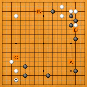 黒1(D)は60点くらいでしょう。白△の石に動き出されるのが嫌なのでしょうが、まだ気にするところではありません。