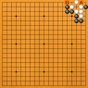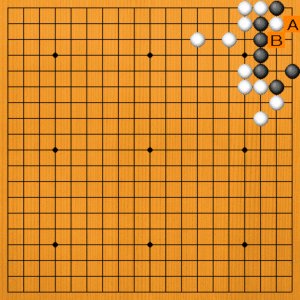 黒1(A)とホウリコむのは、白2でオシツブシです。黒二子が取られて、白生きです。