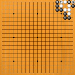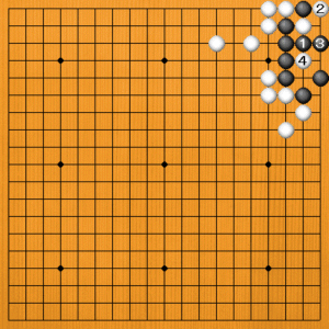 黒1には白2と逃げる余裕があります。黒3に白4と抜いてコウです。白2はコウ材として使えるのです。