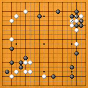 黒1のアテコミが急所でした。白2のツギには、黒3と切って、隅の白一子が取れています。