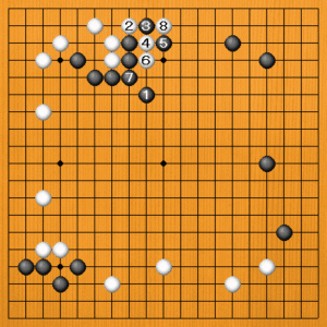 黒1は、白2のハネから4のノゾキも狙いになります。白6とトバれて、攻められる可能性があります。
