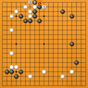 白1とハサミツけてくれば、黒2とハネてコウにすることも出来ます。コウが嫌なら、黒2ではaとサガってもいいでしょう。