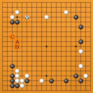 白△と受けたところです。次の一手を、A~Cの選択肢の中から示してください。