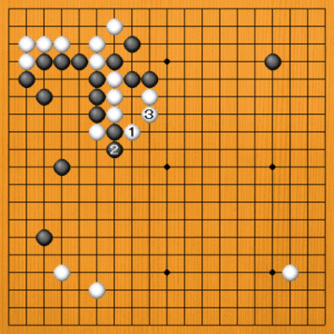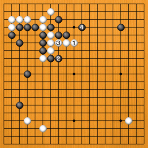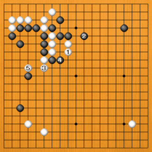 白1に黒2とノビてくれば、白3、5と二段にハネるのが強烈です。黒は苦しい姿になりました。