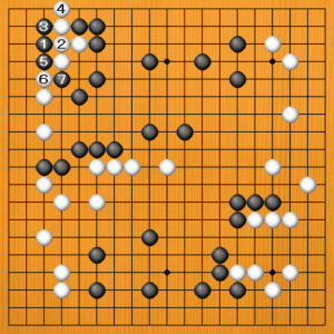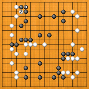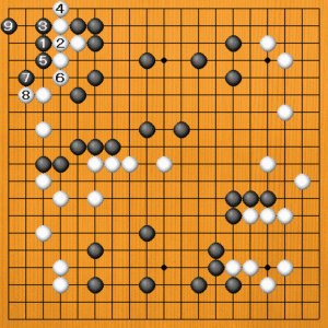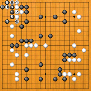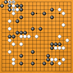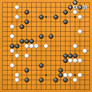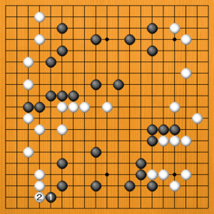 おたがい地を囲いあって、二線のヨセが大きくなってきます。