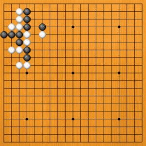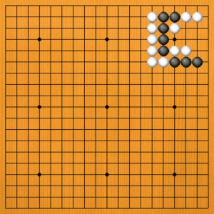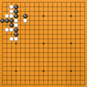 | 石が切り結んで、互いに際どい局面では、要石を見極めることが大切です。要石を取れば、一気に優位に立てるでしょう。 |