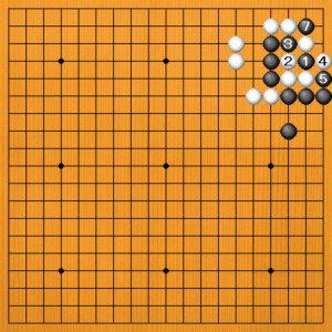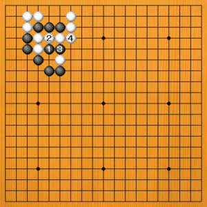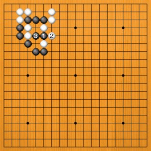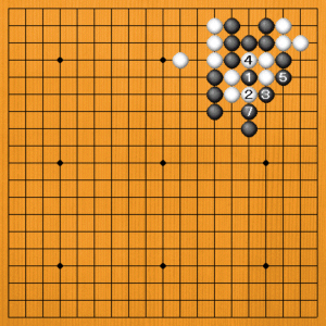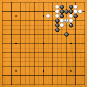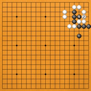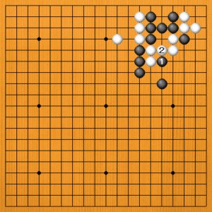 黒1と出るのは、白2とツガれて何事も起こりません。