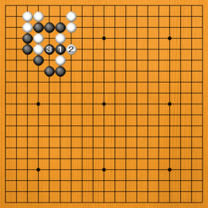 黒1と直接アタリにしても、解決策は見つかりません。白2とツガれて、味よく黒三子が取られです。