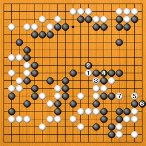 白1のツケから手順を尽くして、ヨセの手筋を決めようとしています。白7とツケたところがテーマです。