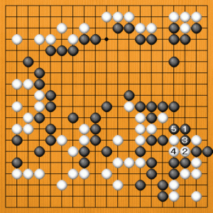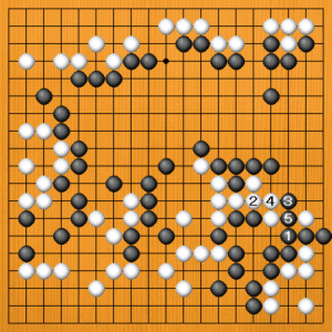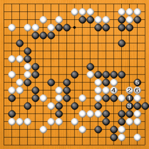 黒1に白2とツゲば、黒3と切って白二子を飲み込みます。白のヨセを最小限に封じ込めることができました。