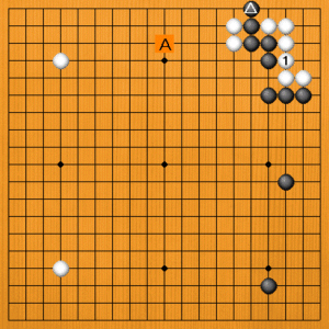 黒△のサガリに対しては、白Aとヒラく余裕はありません。白1とツイで生きていなければならないのです。 |