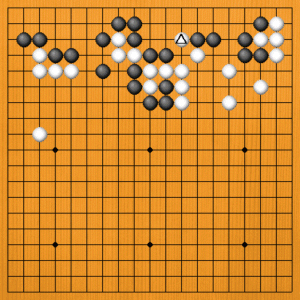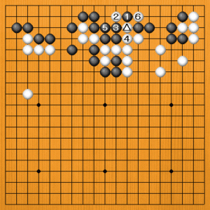 (原図) 白△とハネたところです。この後の黒の応手に失敗の原因があります。 |