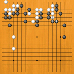つまり、黒1のケイマが正しい応手でした。白2と出られても、黒3とオサえてきれいに止まっています。 |