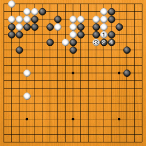 (失敗の原因) B=黒3とコスんだ手がまずかったのです。これが失敗の原因でした。詳しくは、後ほど説明します。 |