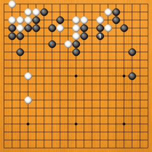 A=黒1のノビは正しい手です。黒の失敗はこの後の打ち方にありました。 |