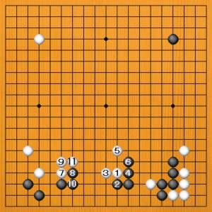 黒が手を抜くと、すぐ白1のマクリから3で中が止まってしまいます。