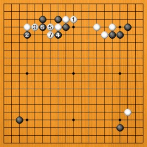 上辺は白石の多いところです。相手の石が多いところではサバキを目指します。
