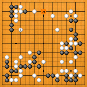 白1と受けさせれば、白aの切りを防いでいます。これは白がつらいでしょう。
