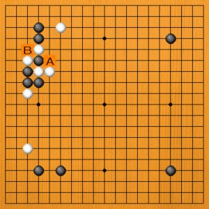 ここで、黒はAと逃げるのがいいか、Bがいいか、考えてください。