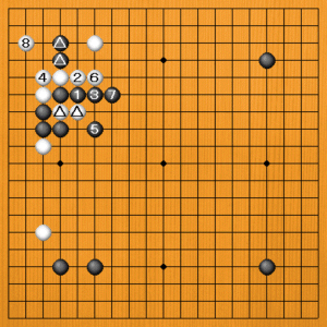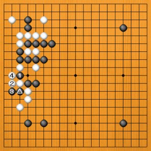 黒1はいけません。白2とサガられて、黒△が助かりません。