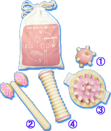 後ろのゴムを手にはめて、肩等のツボを刺激します。