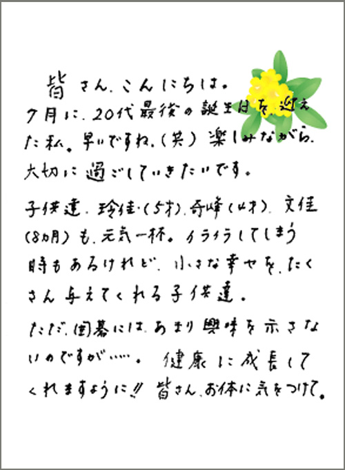女流棋士の近況報告をご覧いただけます。近況報告では女流棋士のプライベートの写真や近況のお手紙を見ることができます。また抽選で当たる担当棋士からのサイン色紙もご用意しています。応募方法は簡単ですので是非ご応募ください。 続きを読む