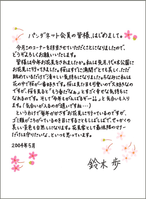 女流最強位に就位された鈴木歩女流最強位の近況写真と自筆のお手紙をご覧いただけます。