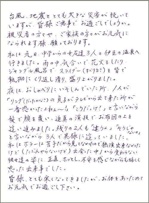 お友達や姪っ子さんとの日々を近況写真や直筆お手紙でご覧いただけます。