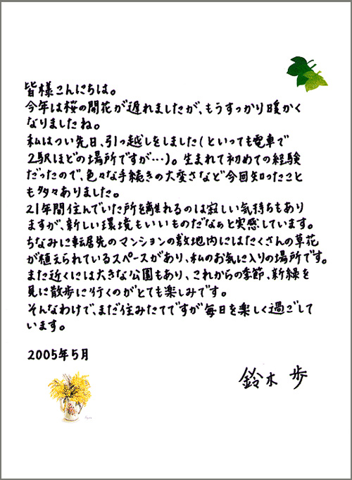 生まれて初めて引っ越しをしたという鈴木歩三段の近況写真と直筆のお手紙をご覧いただくことができます。