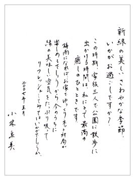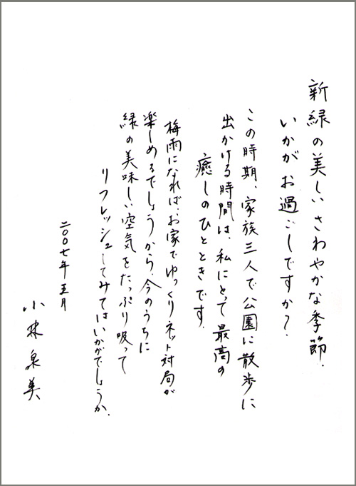 ご家族や小林泉美六段の近況写真と直筆のお手紙をご覧になれます。