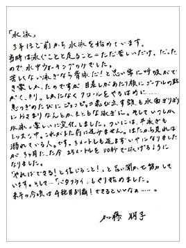 水泳についてたくさん語ってくださった加藤朋子五段の近況写真と直筆のお手紙をご覧になれます。
