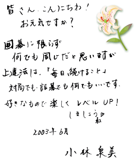 第15期女流名人に就位された小林泉美女流本因坊・女流名人の近況写真や直筆お手紙をご覧いただけます。